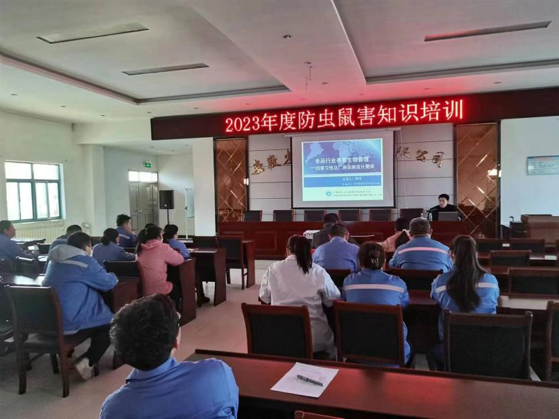 為提高公司品質(zhì)管理人員的蟲害防制能力,系統(tǒng)有效處理工廠蟲鼠害問題以降低蟲害造成的損失,滿足消費者不斷提高的質(zhì)量要求,2月27日,公司邀請中國中檢安徽公司來司開展蟲鼠害防治培訓,公司總廠及各分廠車間、安環(huán)部、質(zhì)量中心等20余人參加培訓。