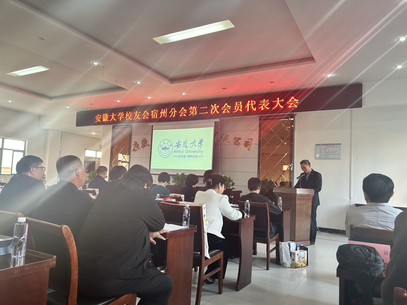 錢家盛代表母校向上一屆理事會的辛勤付出表示衷心感謝,向當(dāng)選的新一屆理事和大會的勝利召開表示熱烈祝賀,并介紹了母校“雙一流”建設(shè)以來取得的突出成就。錢家盛指出,校友是母校的靚麗名片,是安大精神的傳承者、踐行者,是安大辦學(xué)聲譽的傳播者、提升者。加強和改進(jìn)新時代校友工作,是實現(xiàn)建校百年奮斗目標(biāo)的必由之路。錢家盛表示,希望宿州校友分會堅持服務(wù)校友、服務(wù)母校、服務(wù)社會,將分會建設(shè)成為校友聯(lián)絡(luò)平臺、宣傳推廣基地、資源集聚中心、合作發(fā)展紐帶,為宿州校友事業(yè)進(jìn)步、母校“雙一流”建設(shè)事業(yè)高質(zhì)量發(fā)展和宿州經(jīng)濟(jì)社會發(fā)展做出更大貢獻(xiàn)。